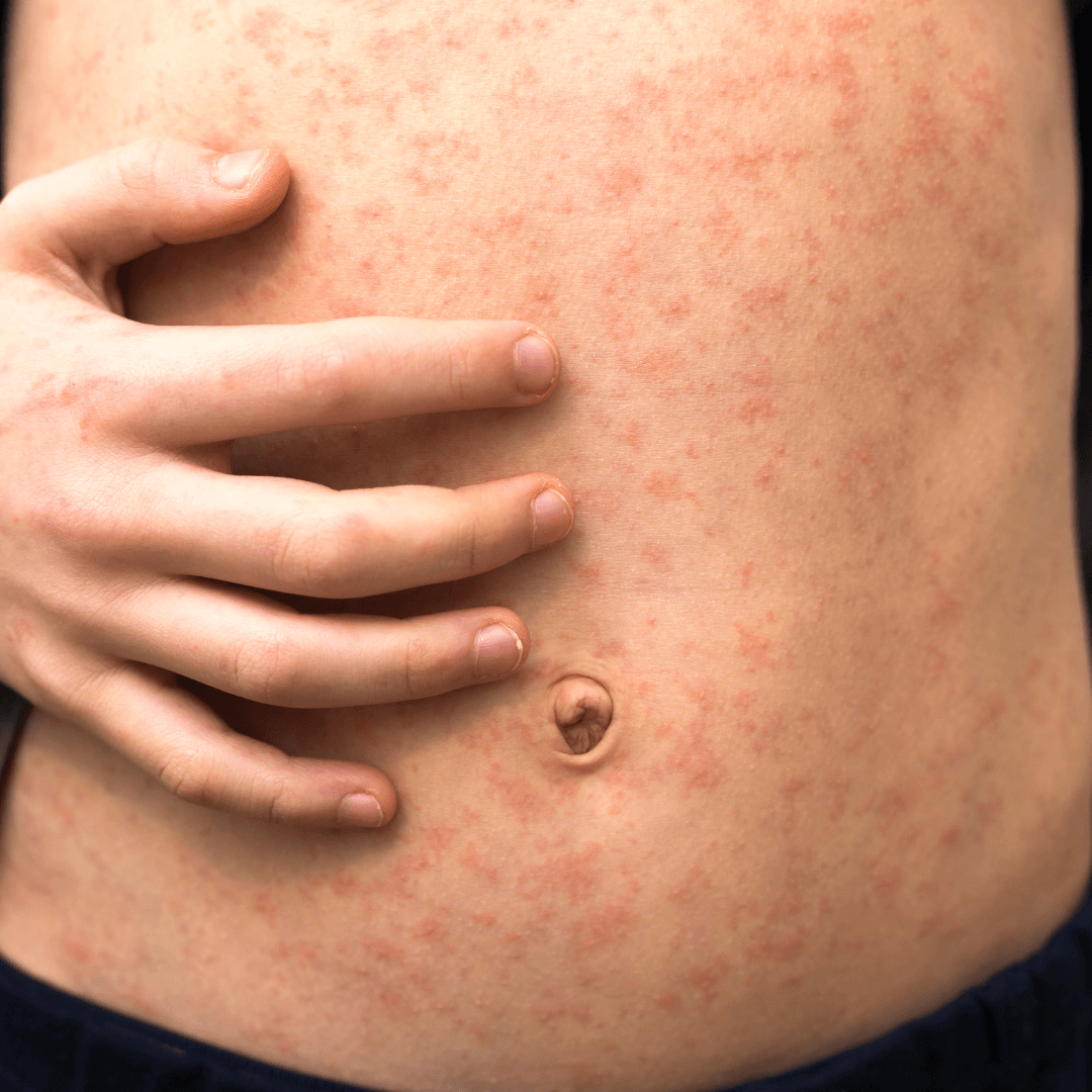Un aspect important în identificarea rujeolei este erupția cutanata caracteristică. Petele roșii, inițial în spatele urechilor, se extind apoi către față, gât și în cele din urmă pe tot corpul. Aceste pete pot persista timp de aproximativ o săptămână și pot fi însoțite de o stare generală de disconfort.