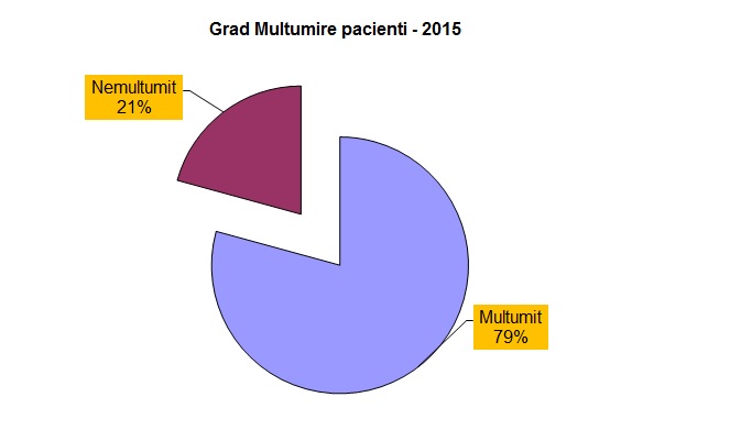 In 2015 gradul de satisfactie al pacientilor per total a crescut la 79.5 %, in crestere cu 4.5% fata de anul precedent, iar procentul celor care au raspuns cu bine/foarte bine a fost de 55%.