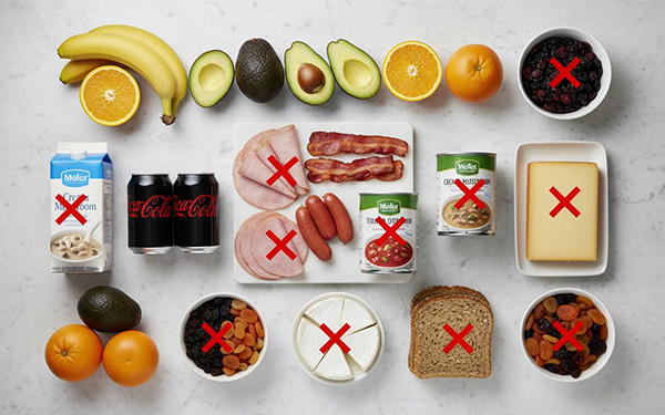 - Alimente bogate în potasiu: Bananele, avocado, portocalele și roșiile conțin cantități mari de potasiu care, în cazul rinichilor deteriorați, se pot acumula în sânge și pot cauza aritmii cardiace periculoase. O banană mare conține aproximativ 487 mg de potasiu, iar un avocado mediu poate ajunge la 975 mg.