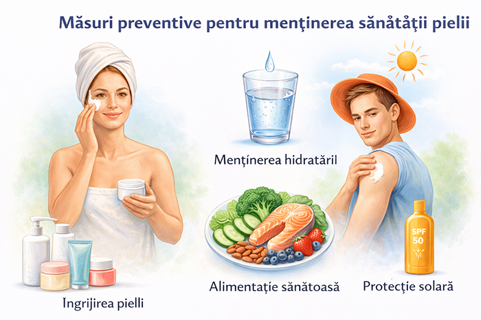 - Menținerea igienei adecvate: Curățare regulată cu produse blânde, adaptate tipului de piele
