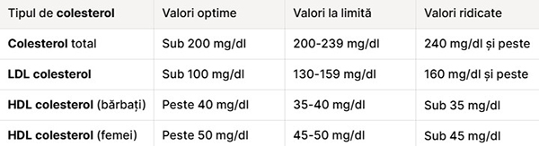 - Colesterolul total: Suma tuturor tipurilor de colesterol