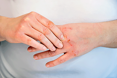 Mainile devin foarte uscate, apar crapaturi si fisuri insotite de mancarine, usturime si uneori durere. Prin aceste zone pot intra mai usor germeni sau antigene, determinand sensibilizarea cutanata si aparitia eczemelor.