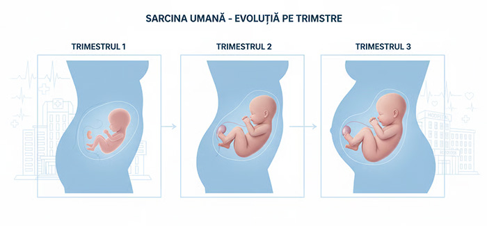 Primul trimestru, care cuprinde primele 12 săptămâni, este perioada în care se formează toate organele vitale ale fătului. Această etapă este crucială pentru dezvoltarea sistemelor de bază ale corpului uman. Al doilea trimestru, de la săptămâna 13 la 27, este considerat cel mai confortabil pentru mamă, când simptomele timpurii ale sarcinii se ameliorează, iar fătul crește rapid în dimensiuni. Al treilea trimestru, de la săptămâna 28 până la naștere, se caracterizează prin maturizarea organelor și pregătirea pentru viața extrauterină.