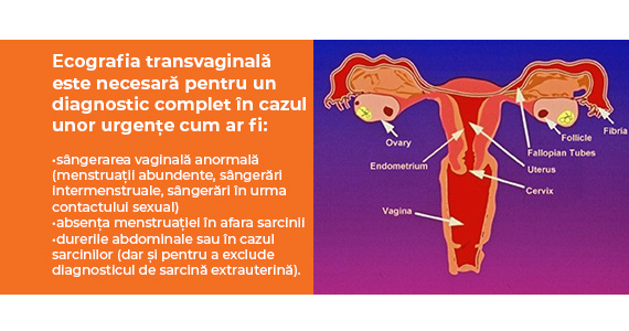 Pentru ca analiza să fie completă, ecografia transvaginală are rolul de a vizualiza părțile aparatului genital feminin aflate în pelvis: