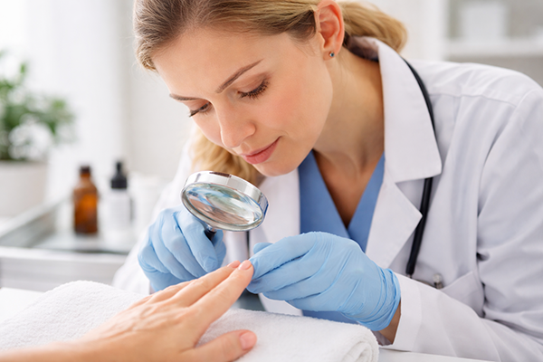 Diagnosticul începe, de obicei, cu un consult dermatologic, în cadrul căruia medicul va analiza aspectul unghiei și va discuta despre istoricul pacientului.