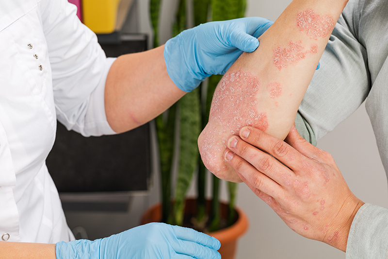 Medicul poate evalua severitatea psoriazisului pentru a stabili ce opțiuni de tratament ar fi cele mai potrivite pentru pacient.