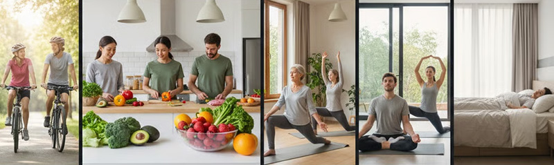 - Adoptarea unei alimentații echilibrate: bazată pe consumul regulat de fructe și legume proaspete, cereale integrale și proteine slabe. Reducerea aportului de grăsimi saturate, eliminarea grăsimilor trans și limitarea zaharurilor adăugate