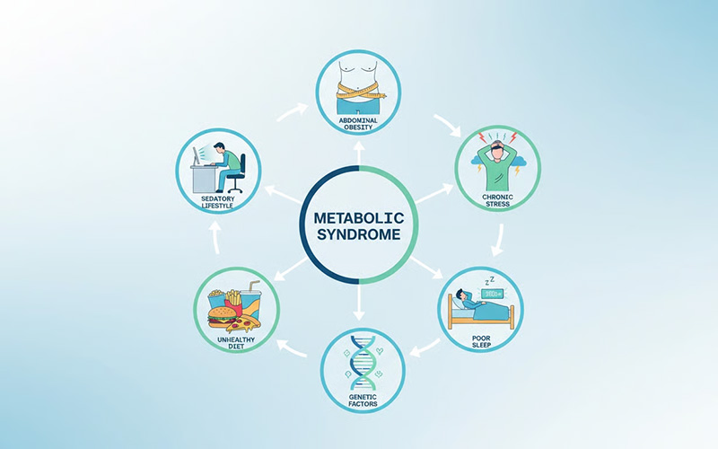 Sindromul metabolic apare ca rezultat al interacțiunii complexe dintre diverși factori, rezistența la insulină fiind un element central. Aceasta se manifestă atunci când celulele corpului nu mai răspund adecvat la insulină, hormonul care reglează nivelul glucozei în sânge.