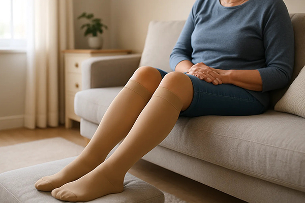 Purtarea ciorapilor compresivi poate ajuta la prevenirea stagnării sângelui în vene, mai ales dacă ai factori de risc pentru tromboză.