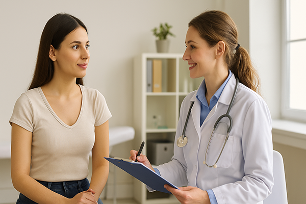 - Medicul te întreabă despre istoricul tău medical, ciclul menstrual, eventualele simptome, metode contraceptive sau probleme apărute recent.