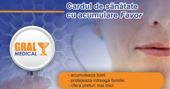 Incepand cu luna noiembrie 2011 Gral Medical lanseaza un produs nou pe piata si anume Cardul cu Acumulare Favor. In primul rand cardul Favor de la Gral Medical este un card de sanatate cu “acumulare” asa cum spune si denumirea. Acest lucru inseamna ca pe el se acumuleaza bani, iar acestia raman pe card atata timp cat doreste titularul. Altfel spus, suma acumulata pe card nu se pierde la sfarsitul anului. Cardul cu acumulare Favor poate fi folosit de toti membrii familiei (parinti, copii, frati etc). Atunci cand pacientul este pus in situatia in care o ruda are probleme de sanatate, cardul Favor protejeaza intreaga familie. In al treilea rand cardul iti ofera flexibilitate maxima la acumulare (lunar, ocazional sau ambele) si accesul la toate serviciile medicale cu reduceri semnificative.