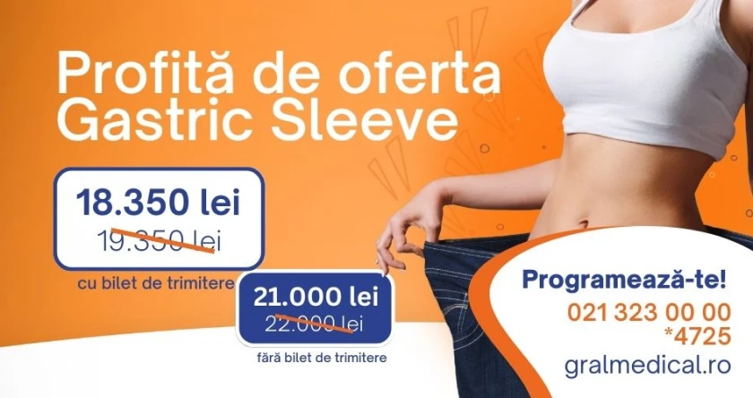 - Gastric sleeve fără bilet de trimitere: 21.000 RON